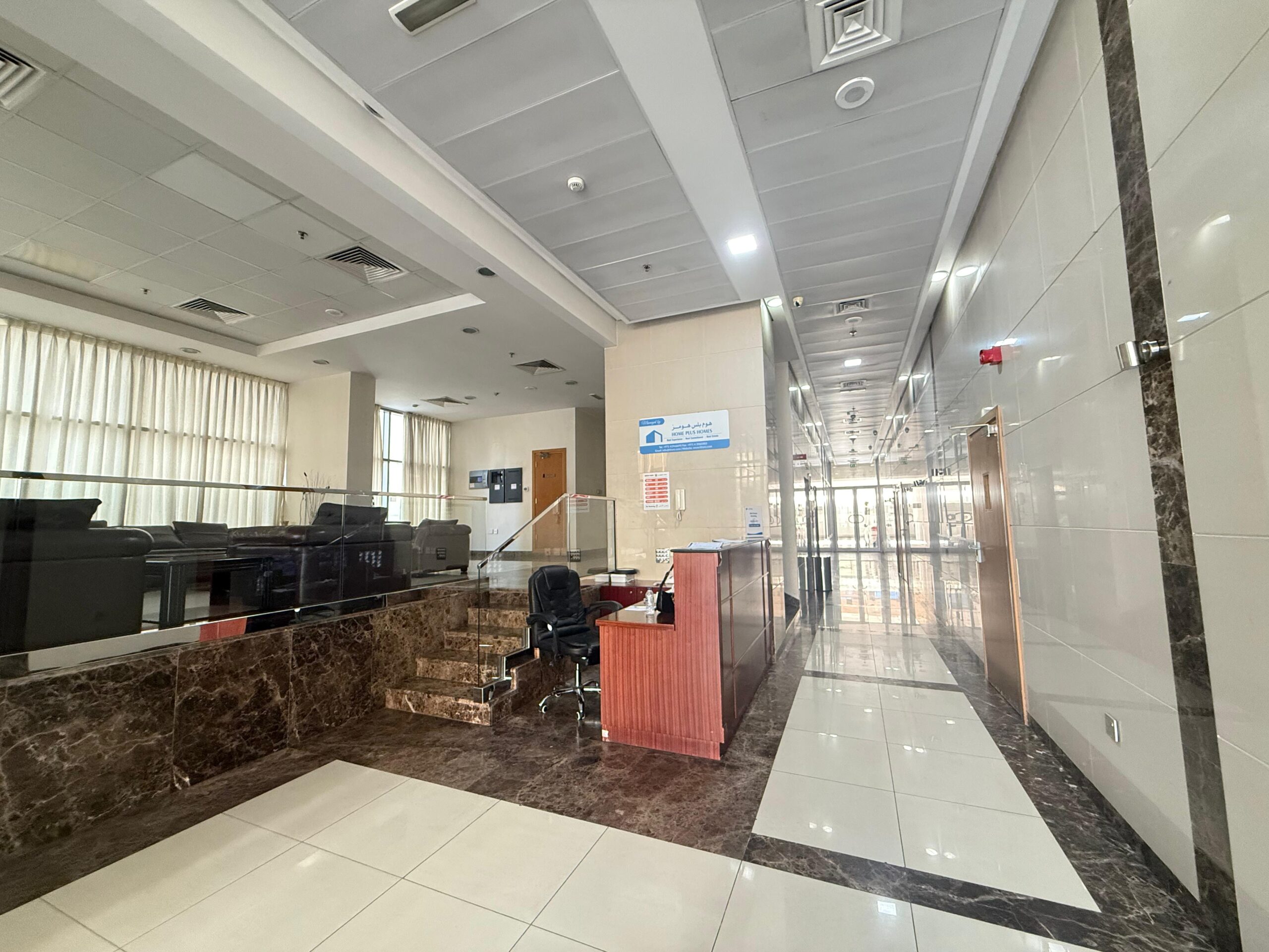 High-speed elevators and a clean, welcoming lobby